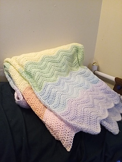This is my version of a Waves Blanket that a friend saw on Pinterest. The colors were selected after a discussion with the lady that requested the blanket. This blanket can be any combination of colors. We selected a rainbow of pastel colors for this blanket.
