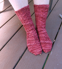 Both patterns use a Fleegle or “strong” heel (which works exactly the same in both directions). Easy and fun, with no picking up stitches, and no holes at the corners.