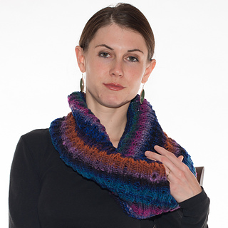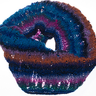 The pattern produces an infinity scarf that measures 32” circumference x 9” height.