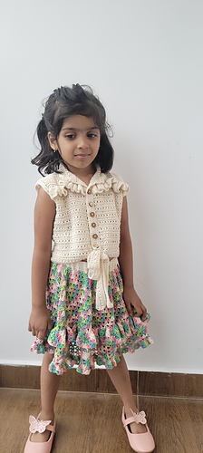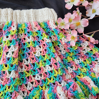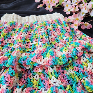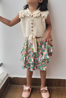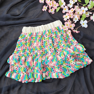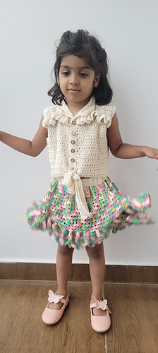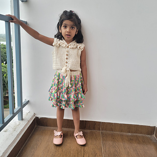 Rangeela Skirt - A light weight breezy summer skirt that absolutely elevates any occasion and is a perfect companion for your OOTD. With a lovely flare, cute little ruffles, it takes your heart away just by the look of it. Since this is made with very simple V stitches, the construction is very easy.