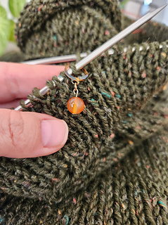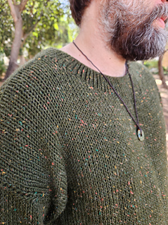 Needles: 5 mm (body) and 4.5 mm (circulars for neckline).
