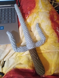 This is a backpack that was requested by my coworker that is obsessed with Teenage Mutant Ninja Turtles, especially Raphael. This backpack pattern can be converted to make any of the Teenage Mutant Ninja Turtles. This pattern is specifically for Raphael. I will design the parts of Leonardo, Michaelangelo, and Donatello if they are requested. The pieces that make up the backpack body are made holding 2 strands of yarn together. The body pieces of the Teenage Mutant Ninja Turtle, i.e. arms, legs, head, and Sais.