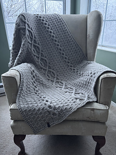 Raven’s Cabled Throw… enjoy those quiet moments when you can wrap yourself up in this cozy, soft throw with a favourite cup of tea. This project knits up quickly on 6.5 mm needles using Estelle Llama Natural Chunky. The centre panel boasts an interesting cable with lots of twists and turns.