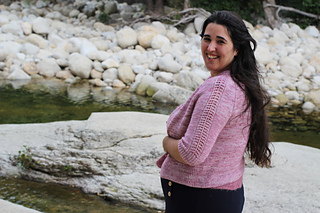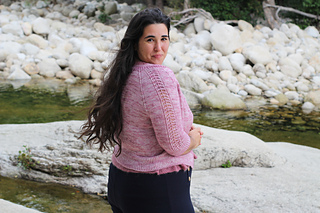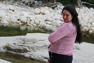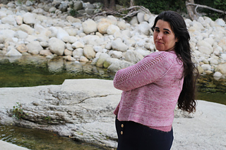 Es una construcción de arriba hacia abajo sin costuras, los aumentos son raglán con unos puntos cruzados muy sencillos que marcan las secciones de aumento y un calado en el centro de la manga. Las mangas se dejan en espera al llegar a cierto punto y se retoman al final para tejerlas en circular continuando el calado hasta el elástico final. La solapa y los ojales de la chaqueta se hacen una vez terminado el cuerpo, recogiendo puntos a lo largo de ambas partes del cuerpo y el cuello.