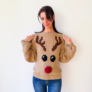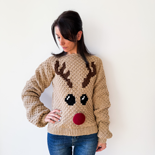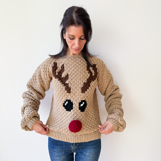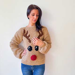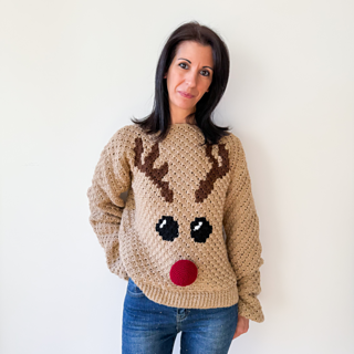 Get festive and cosy with Rebecca the Reindeer Jumper, a playful Christmas “ugly” sweater made with the mini corner-to-corner (C2C) technique. Designed for comfort and fun, this jumper is worked in panels for the body and sleeves, then finished with ribbed waist and cuffs.
