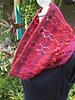 This cozy and rosy cowl uses only one skein of Lion Brand Amazing yarn. I added the ribbon yarn just for fun and some extra texture, but it is entirely optional. A quick and easy lace knit.