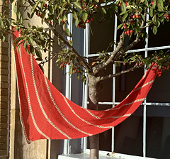 The Red Line Shawl is designed to be an easy, relaxing knit — the kind of project you can work on while watching TV or during knit night. It’s simple to knit yet engaging enough to keep you interested, perfect for when you want something mindful but not fussy.