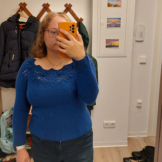 Recommended for knitters who have experience in charted pattern and finishing more than one top-down garment.