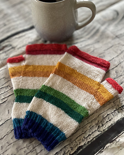Whether you choose bright rainbow tones or soft, faded pastels, this pattern will bring a little light to your day and a smile to your hands. Pair them with the matching Reebou Cowl for the full set.