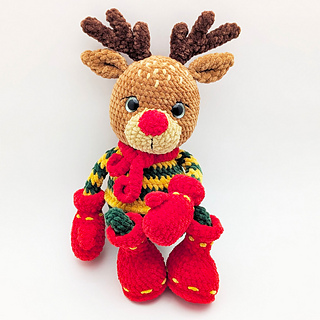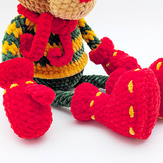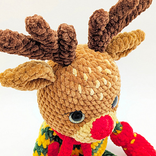 This pattern is designed to be worked with super bulky plush chenille yarns like Himalaya Dolphin Baby, Wolans Yarns Bunny Baby, or YarnArt Dolce, giving your finished toy a soft, velvety feel. Although you can also use other yarns like Bernat Blanket or similar bulky yarns, just keep in mind that the toy’s size will vary depending on your yarn choice.