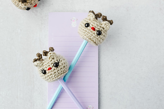 This no-sew crochet pattern is written in U.S. crochet terms, complete with clear instructions and video tutorial to help you along the way. Reindeer Pencil Topper is crocheted in the round/continuous spirals without joining the rounds. I suggest using a stitch marker or different color yarn to keep track of each round. Reindeer Pencil Topper is crocheted in worsted weight yarn and is approximately 1.5 inches tall. Be aware that size may vary depending on the yarn and hook size used. Gauge is not particularly important, just be consistent with the tension you are using. And most importantly, have fun!