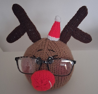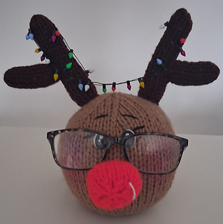 Reindeer spectacles head holder pdf knitting pattern.