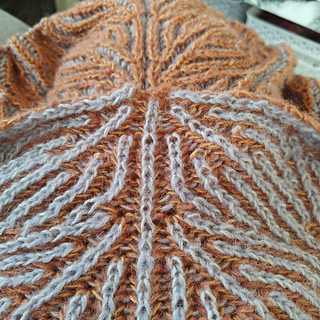 Brioching back and forth, brioche decreases/increases (brLsl dec, brRsl dec, brkyobrk, br4st inc, brk1, brp1, sl1yo). Stretchy Bind off (or the I-Cord Bind off).