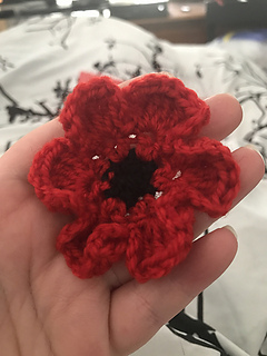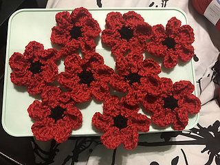 A simple, small poppy motif, perfect as a remembrance pin or as an embellishment to another project.