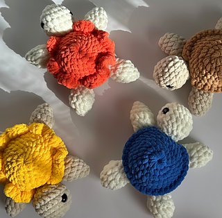 This digital PDF pattern guides you step-by-step to create a cute, customisable turtle!