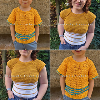 • #1 fingering weight yarn (women bust size S): short sleeve with regular fit, length 34 cm, I used approximately 180g (510m) of cotton bamboo blend yarn, used 2.50 mm hook