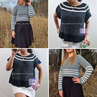 • This piece will work in rounds for the yoke, torso and sleeves.