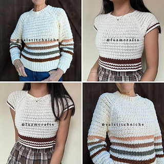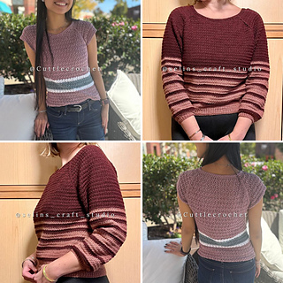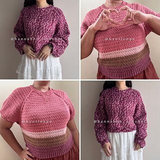 • This pattern is suitable for intermediate crocheters (the maker should know how to differentiate between sc, hdc, dc, tr), although it is made from basic stitches, the sweater has top-down yoke construction that will require a bit of experience.