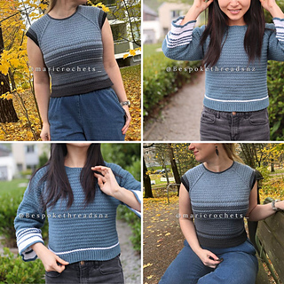 (How much yarn you required is highly depends on the yarn weight, yarn type, crochet hook size, your tension, bust size, I put the detailed info on how much yarn does each testers used in the lookbook)