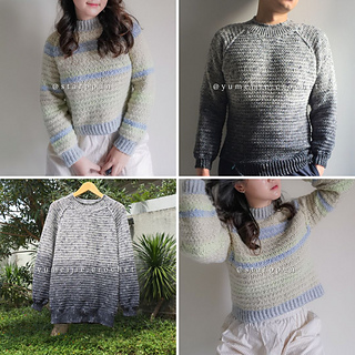 • This pattern offers three types of neckline: round neck, mock neck and turtle neck.