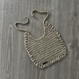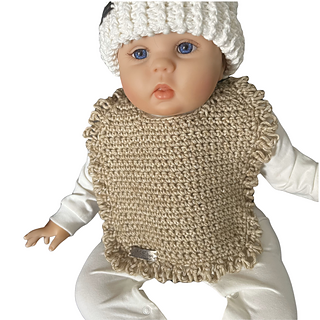 The Renee Love-Knot Baby Bib Pattern is a crochet baby bib worked flat with an adjustable fit. The design includes an optional love-knot frill edging and is intended to help keep clothing dry during feeding and teething. This pattern is written as a single adjustable size and is suitable for handmade baby gifts.