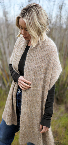Three fabric options given, knitted single stranded for Twig & Pebble Versions. Pure Cashmere & Silk Cloud Version, yarns are held together throughout.