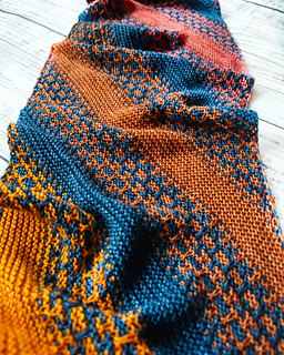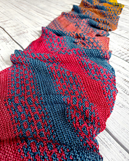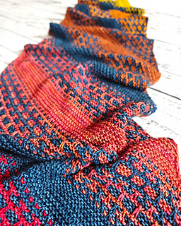 Renka is a long, bias-knit scarf with a gentle diagonal flow. Mosaic sections alternate with garter stitch, creating an easy, steady rhythm that is relaxing to knit. The name comes from the Turkish word renk (color), reflecting how the design lets your colors shift and blend over time.