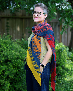 Renka works especially well with color-changing yarns, but it’s just as suited to using leftovers or building your own palette. For best results, choose colors with good value contrast between MC and CC to highlight the pattern.