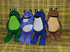Using Red Heart worsted weight yarn and size US 7 needles, the frog is 12 inches high.
