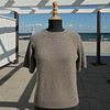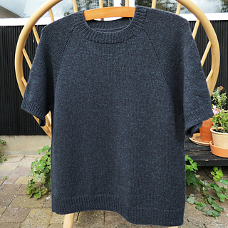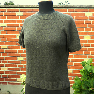 The top is initiated at the top yoke with the first rows worked back and forth across back and sleeves with increases on the front (no short rows), the top is continued in the round. The top has rib edges (K1, P1), but as all edges, including the neckband, are worked at the end, both type and width can be varied according to taste.