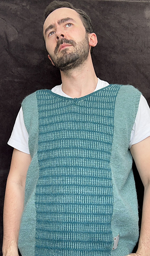 The Restalrig jumper is knit up in 4 panels: Front, back and two sides and sewn together. Finishing with a neckband knit flat and joined at the front, and two armbands knit in the round. The front and back use a slip stitch motif while the sides are completed in stocking stitch. The garment has 3cm/ 1.5” ease. Due to the nature of the design, panels can be mixed and matched with some modification to length of each panel.