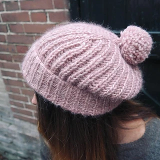 A bulky and fluffy hat made from CamaRose Snefnug. Which basically feels like a little cloud on top of your head. The sample (size M/L) uses two skeins in the color 7386 Powder.
