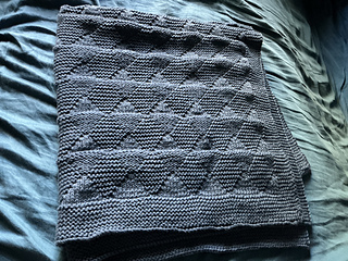 This cotton blanket features an original stitch pattern that makes it fully reversible (in that both sides are identical), so either side can be used randomly. It is an easy and meditative knit that uses only knit and purl stitches, so is suitable for an absolute beginner knitter. It features a garter stitch border with a central pattern of diamonds in three textured stitches (garter, stocking and reverse stocking stitch). An easy method to give beautiful, neat edge stitches is included. The blanket is knitted in one piece.