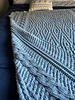 Written and charted instructions for reversible blanket; identical patterns of elongated diamonds, cables and ribbing.
