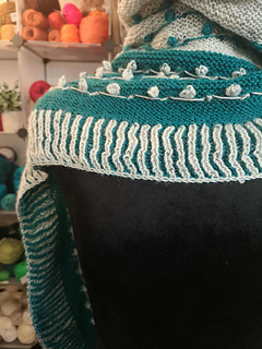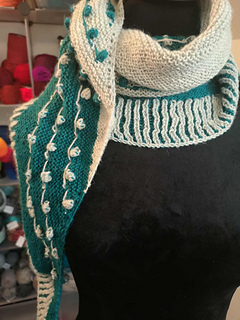 For this creation, I designed a shawl that can be worn right side up or upside down.