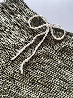 You will make a drawstring using a cord-making crochet technique to use as a tie for the waist band.