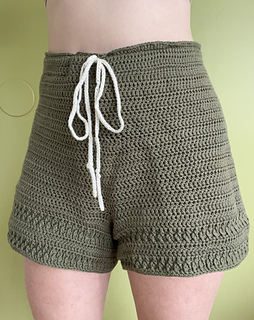 This is a crochet pattern for made to measure shorts that are made in the round, without seaming throughout the process. The legs are crocheted directly onto the main part of the shorts.