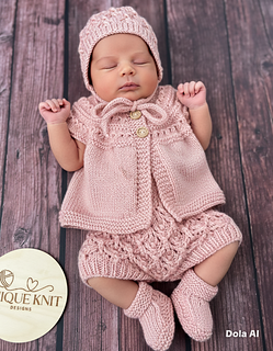 A knitting pattern for a 4 piece set with a beautiful textured stitch design.