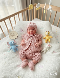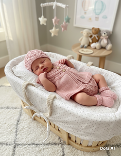This pattern provides the instructions to make all 3 pieces and is suitable for a 0-3 month-old baby or a 16 - 22” Reborn doll.