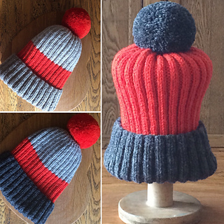 This beanie can be knitted in either Aran or Chunky weight yarn. I have provided details for each in my pattern. The beanie can be knitted in variety of colour combinations, muti stripe, with a contrasting band, using three shades of yarn or just one colour. I provide all instructions in my pattern.