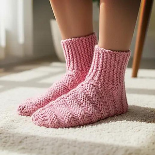 The pattern is written to fit feet from a ladies size 6 – 12 and a man’s 5 – 12.