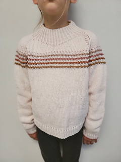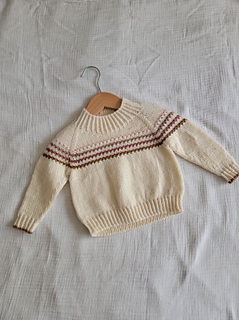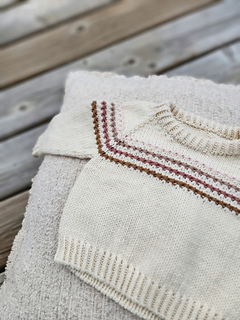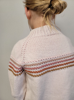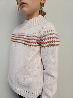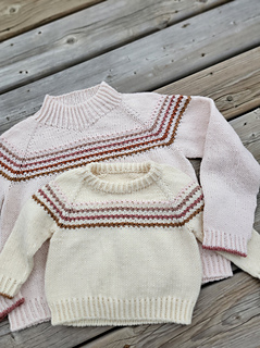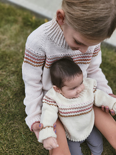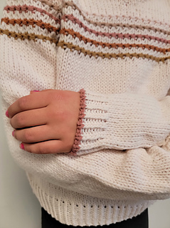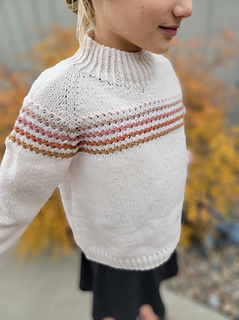 The Ribbons Sweater Mini is a charming, seamless knit sweater that is constructed from the top down. Short rows are used to shape the upper back, and the colorful rows are knit directly into the yoke which add a playful and festive touch that creates the sweater’s signature look. It has a slightly looser fit of 4-6” 10-15cm of positive ease so your little one can grow into their sweater. The model in the picture is wearing a size 10 and has a chest circumference of 28” 71cm.