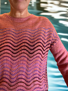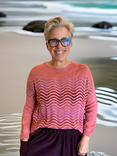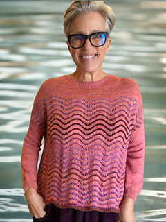 Ride the Waves Top is a breezy, top-down design featuring wave-inspired lace and a modern silhouette. With its relaxed body, slim sleeves, and flattering neckline, this piece is perfect for tonal pairings, soft gradients, and two-color play. Whether you prefer subtle texture or bold contrast, this top invites you to make the design your own.