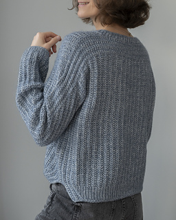 ENG: Ridgewood Sweater is designed to become a wardrobe favourite—effortlessly cosy and unmistakably stylish. Thoughtful details give this sweater its modern, edgy character, with lines flowing in different directions to create striking visual interest. The texture echoes the look of brioche while remaining simpler to knit and more economical with yarn. Its unique stitch pattern is inspired by tree lines across rolling hills, giving Ridgewood its distinctive identity.