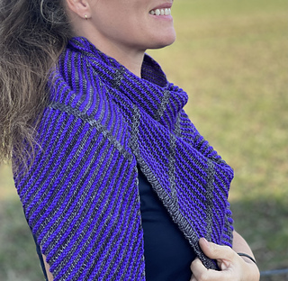 The rustic yarn I used for the “Right Path” shawl called very loudly for texture! My enthusiasm for creating something special, yet plain from simple patterns, I was able to do very well again here. Using a strong contrast, slip stitches and lots of knitting stitches, I created an asymmetrical shawl which is knitted sideways. I rounded out the straight look of the dark stripes with a playful picot edge. The following techniques are also included: purling, increases, decreases.