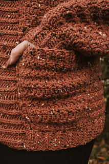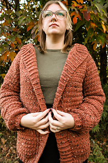 The Riley Cardigan is a classic Fall Cardigan made with a traditional top-down construction and a sophisticated fit. Designed for everyday wear, the Riley Cardigan is crocheted with an effortless stitch pattern to create an opaque, textured fabric that offers warmth and style without compromise. The irresistible plush fabric lends a beautiful drape for a store-bought look that can be hard to find in crocheted garments. This pattern will produce a wonderfully warm cardigan for you to enjoy throughout the colder seasons.