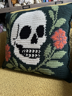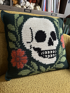 The finished pillow is 18” x 18”. The colorwork panel could be made alone to create an 18”x18” wall hanging.