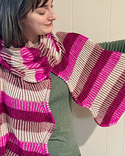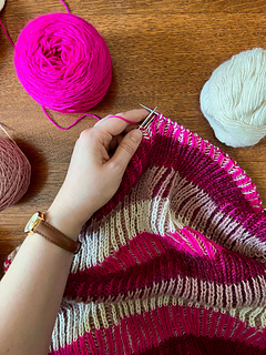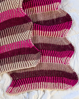 A wavy stripey fun wrap for brioche lovers! I designed the Ripple wrap shortly after having my son. I needed something just engaging enough to use some brain power without taking too much attention and zero extremely long rows. The Ripple Wrap is in between a scarf and a shawl, it’s just big enough to be cozy without being too big.