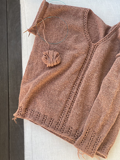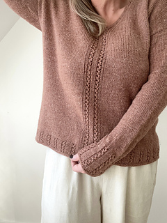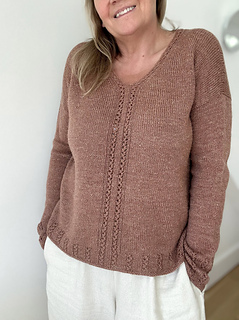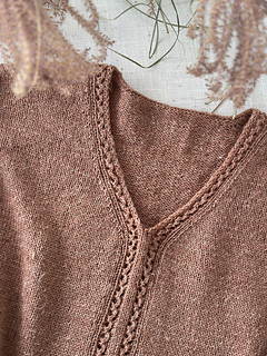 The body can be worked straight, or there is a waist-shaping option. There are two hem options: a simple garter edging or the Riptide stitch pattern and garter finish.