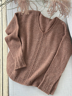 Riptide Shore Leave is the sister sweater to the Riptide Tee. It is a perfect year-round drop shoulder sweater. The Riptide stitch pattern is seamlessly integrated into the soft, rounded V-neck that merges at a perfect depth and flows into the body to carry the Riptide stitch pattern via a central panel to the hem.